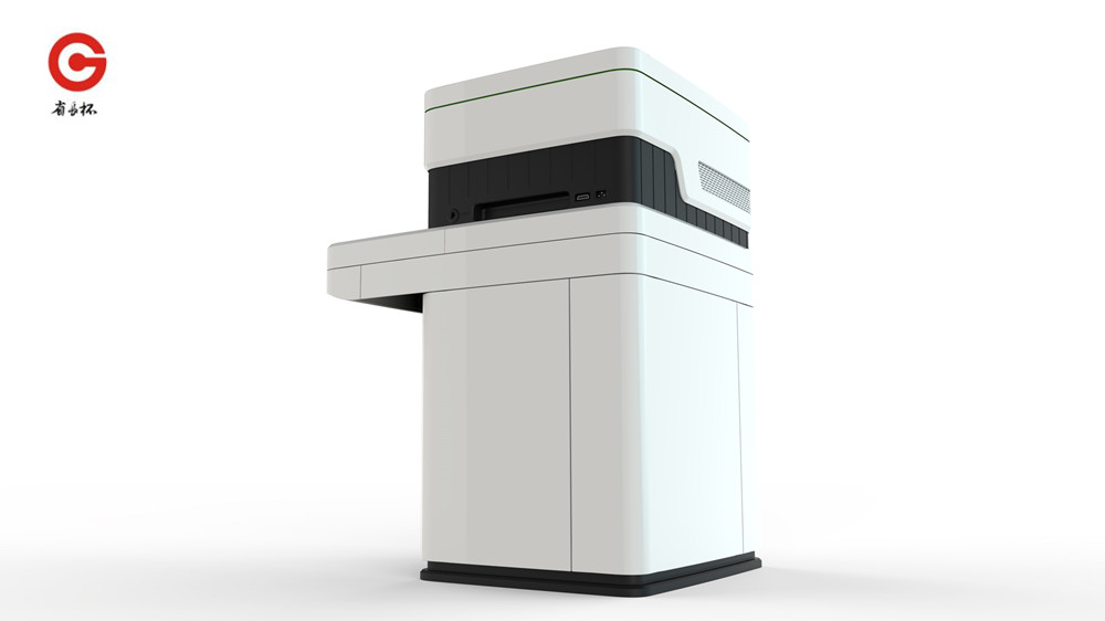 设计团队主要考虑,既要保证整机的造型与上部主机拆分后单独使用时的美观性,又要兼顾内部运动传输与外部物料交换等人机交互;以及对于正面的两个运动的门及传输机构,如何有效解决。