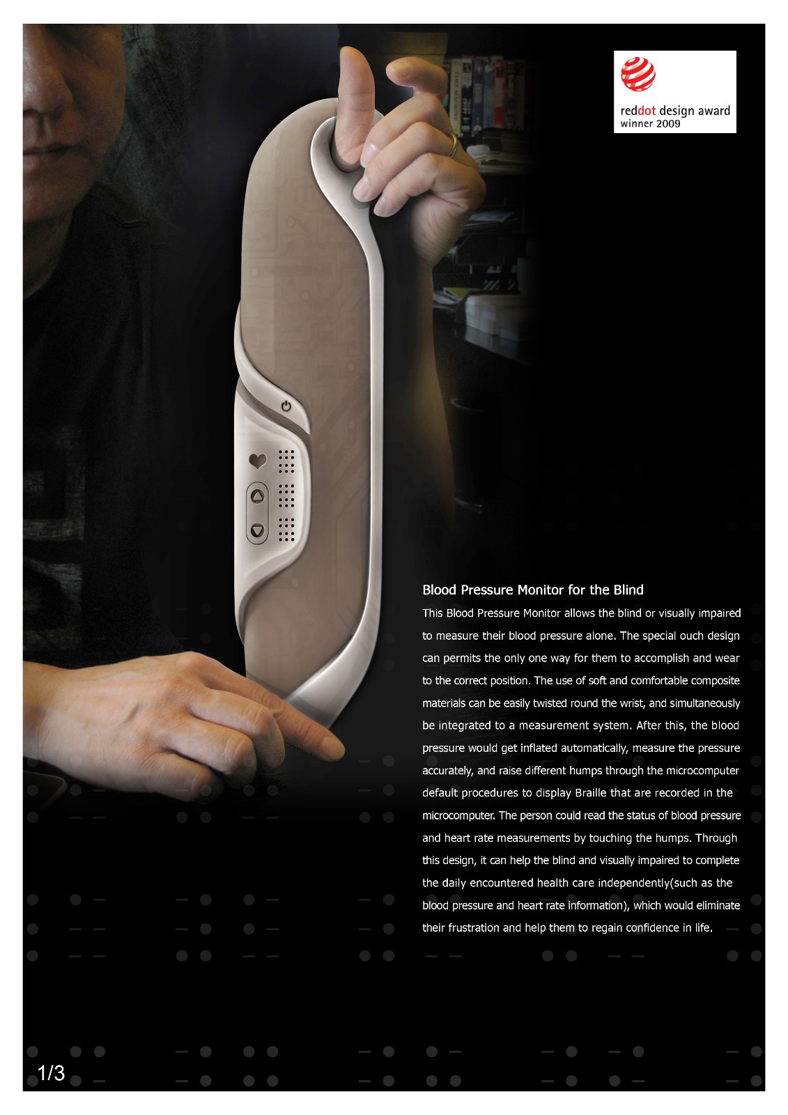 通过专门设计的扣环,让盲人或视力障碍者可以独立完成唯一的佩戴姿势;并通过微电脑控制程序,产生不同的凸起点,测量者通过触摸凸起点了解自己的血压和心率状况,消除他们在生活中的挫折感,重获生活的信心。