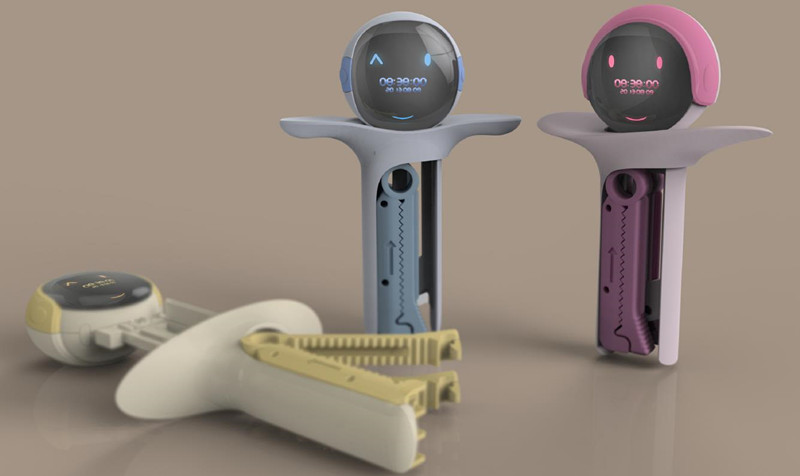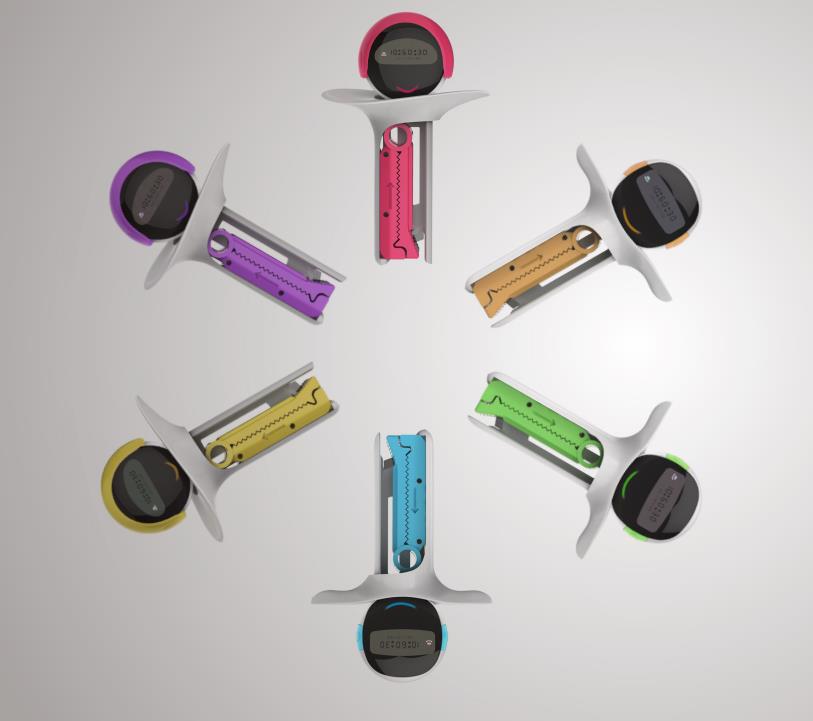 LOGO的首字母“b”巧妙的结合了孕妇突出的肚子,形象的表达了产品的用户属性,提高了产品的识别性;中间字母“o”+“k”的组合,来源于产品的外形设计,“o”代表电子记时器,“k”是“v”型凹槽和闭合夹部分的概括。“a”象征着婴儿的脐带,这就像一个婴儿出生的过程。