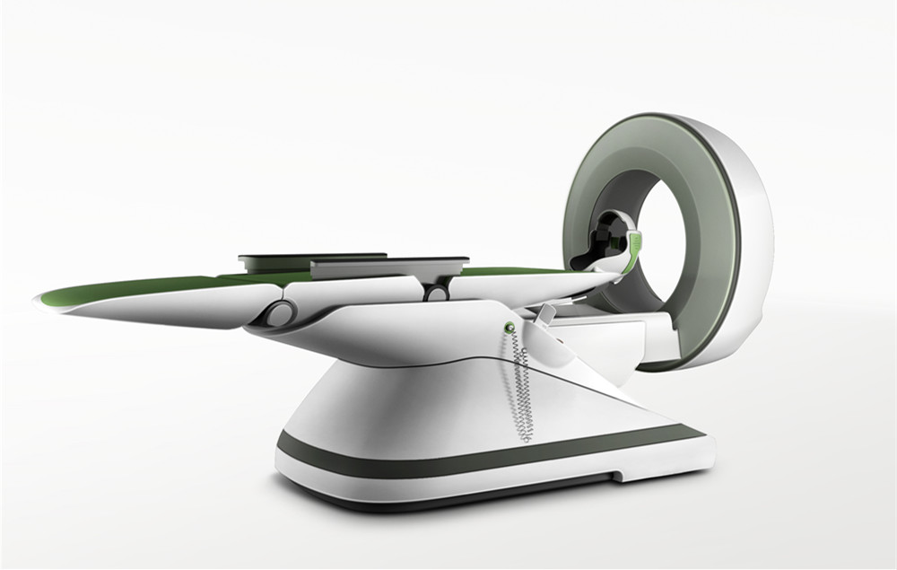 基于我们在医疗领域多年的机械设计经验,我们构想出独创的头颈部PET系统,高度集成化的电气控制与结构形式,作出这样结构轻巧的设计,把PET这种高端分子成像系统引入更高一层的研究领域,由于它的紧凑的结构和灵活的体位控制,可以为患者提供多体位的治疗和人性化的成像控制过程,人体和头部一起向下从90-0度的变化,提供给科研机构由垂直到水平变化过程中动态的患者脑部活动状态和病灶反应,便于进一步的跟踪和治疗方案的展开。