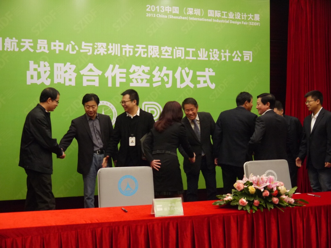 为了适应我国载人航天事业发展的需要,进一步提升航天工效设计能力和水平,12月3日,在首界中国国际工业设计大展的闭幕式上,深圳无限空间工业设计有限公司与中国航天员中心进行了战略签约,就无限空间对航天中心提升载人航天领域工效要求和航天产品的工业设计水平,提供切实可行的实现手段及技术支撑。